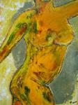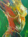 2008Een vrouw, torso, bewegend op muziek. Dit doek wordt omlijst door een handgemaakt zwaar houten lijst.