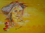 2009Indiase vrouw. Waarom dit schilderij "hoop" genoemd? Hoop op een goeie toekomst? Wie zal het zeggen....