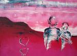 2010Schilderij, gemaakt n.a.v. een klein (zwart wit) fotootje in de krant. Deze foto sprak me aan. Straalde geluk, geborgenheid uit.