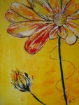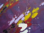 2008Veel kleuren gebruikt, (bijna) geheel met de vingers geschilderd. Er met heel veel plezier ('s nachts) aan gewerkt, de kleuren spatten haast van het doek. Zee, duinen??? Je zegt het maar.